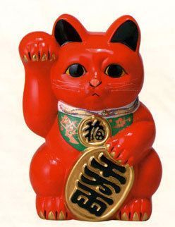Un "Maneki-Neko" (aussi appelé "chat porte bonheur") est une statue traditionnelle en céramique ou en porcelaine représentant un chat assis et levant la patte au niveau de l'oreille. On en trouve quasiment partout au Japon, dans les magasins, près des caisses, dans les restaurants, et même chez la plupart des japonais.