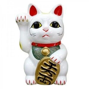 "Maneki" vient du verbe "Maneku" qui signifie "inviter" ou "saluer" et "Neko" désigne le "chat". La tradition veut qu'on mette un de ces chats dans les magasins pour attirer la fortune. La patte gauche est censée attirer les clients, la patte droite l'argent.